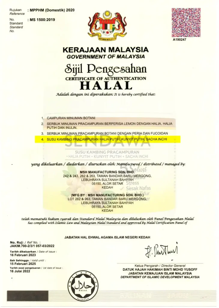 Selain itu kami telah medapt pengikitirafan Halal oleh Jabatan Kemajuan Islam Malaysia (JAKIM)